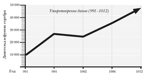Однако английские барды воспевали Молдон, потому что на самом деле эта битва была исключением. Север и Восток страны были более родственны викингам, чем Уэссекской династии, что сделало невозможным эффективное общенациональное сопротивление. Вместо того викингам платили дань – данегельд, чтобы обеспечить их отступление. Неудивительно, что они приходили вновь и вновь. Политика умиротворения развратила английское общество, Этельред посылал собирать налоги своих приближенных, которые взимали деньги и для себя, так что средств на данегельд уже не хватало. Неудивительно, что «Англосаксонская хроника» в эти годы постоянно сетует: планы противостояния данам провалились из-за предательства.