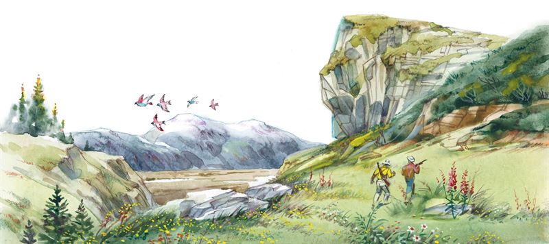 Они сидели плечо к плечу, внимательно исследуя холмистые склоны и зелёные скаты гор, возвышавшихся перед ними.