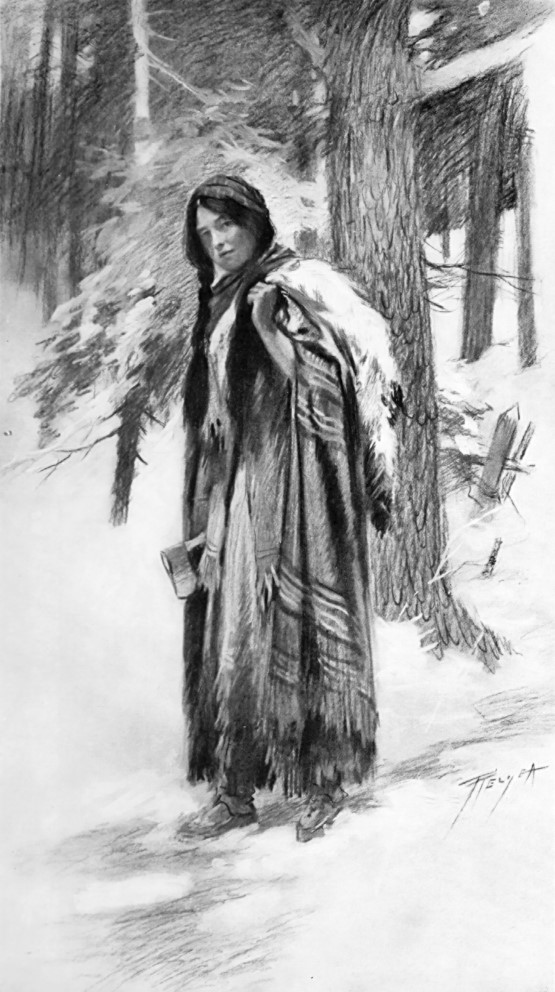 Род тут же направился в лес по тропинке, по которой, как он уже знал, любила гулять Миннетаки. Вскоре тропа привела его к усыпанному галькой песчаному берегу, где девушка часто оставляла свое каноэ. Было ясно, что совсем недавно она здесь побывала: ледяная корка вокруг каноэ обколота, словно Миннетаки проверяла ее прочность, слегка толкнув лодку. Дальше, судя по отпечаткам мокасин, она направилась вверх по пологому берегу, к лесу.