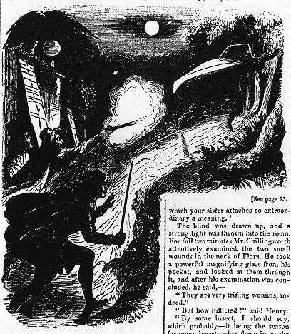 Юноши, дрожа, приблизились к постели. Флора сидела, откинувшись спиной на подушки. Она была без чувств. Ее лицо казалось белым, словно мел, а слабое дыхание едва угадывалось. На одежде, большей частью у шеи, виднелись пятна крови. Она выглядела как жертва долгой и мучительной болезни, и братьям почти не верилось, что еще день назад их сестра была в расцвете сил, лучась здоровьем и весельем.