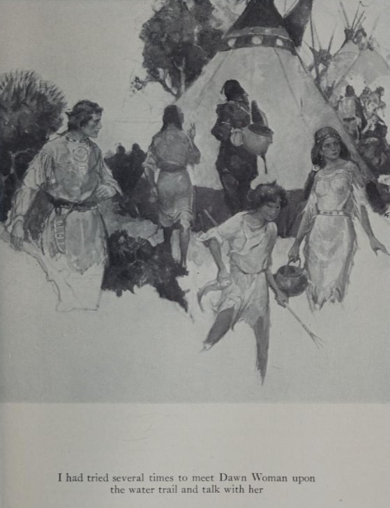 В сумерках девушка в сопровождении жены отца, кутенайки, пришла навестить Женщину-Горностая и получила обещанные подарки – в том числе толстую шерстяную шаль ярких цветов, что заставило девушку запеть от радости. Девушка свободно говорила и рассказала нам о своей жизни среди нез-персе: о том, что дичи было мало, и люди зависели от того, сколько лососей удастся загарпунить в большой реке, про которую я решил, что это либо Колумбия, либо Змеиная. Но о её будущем муже, старом Двойном Громе, не было сказано ни слова.