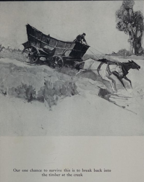 Это всегда заставляет сердце учащенно биться – неожиданное нападение врагов, желающих заполучить твой скальп. Наши работники, которые особой храбростью не отличались, начали кричать нам с Апси, чтобы мы их защитили. В любом случае наше место было рядом с ними: фургоны давали нам хорошую защиту от нападавших. Мы вскочили на лошадей, поскакали вниз и спешились рядом с фургонами раньше, чем враги спустились с длинного крутого склона на равнину. И всё это время наши работники не переставали нас звать.