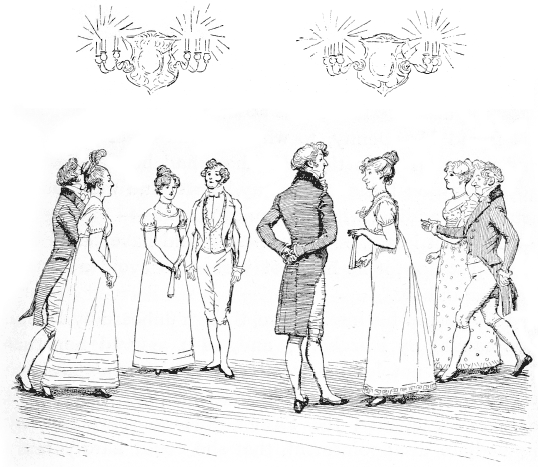 When the dancing recommenced, however, and Darcy approached to claim her hand, Charlotte could not help cautioning her in a whisper, not to be a simpleton, and allow her fancy for Wickham to make her appear unpleasant in the eyes of a man ten times his consequence. Elizabeth made no answer, and took her place in the set, amazed at the dignity to which she was arrived in being allowed to stand opposite to Mr. Darcy, and reading in her neighbours’ looks, their equal amazement in beholding it. They stood for some time without speaking a word; and she began to imagine that their silence was to last through the two dances, and at first was resolved not to break it; till suddenly fancying that it would be the greater punishment to her partner to oblige him to talk, she made some slight observation on the dance. He replied, and was again silent. After a pause of some minutes, she addressed him a second time with, “It is your turn to say something now, Mr. Darcy. I talked about the dance, and you ought to make some sort of remark on the size of the room, or the number of couples.”