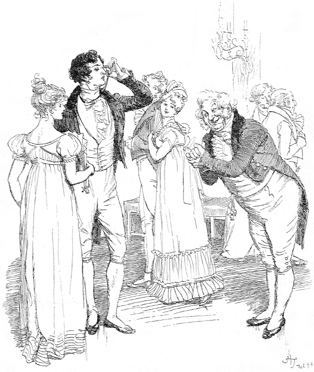 “I have been most highly gratified indeed, my dear sir. Such very superior dancing is not often seen. It is evident that you belong to the first circles. Allow me to say, however, that your fair partner does not disgrace you, and that I must hope to have this pleasure often repeated, especially when a certain desirable event, my dear Eliza (glancing at her sister and Bingley), shall take place. What congratulations will then flow in! I appeal to Mr. Darcy – but let me not interrupt you, sir. You will not thank me for detaining you from the bewitching converse of that young lady, whose bright eyes are also upbraiding me.”