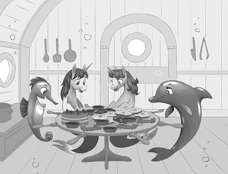Вообще-то магией обладают все жители Острова русалок-единорогов. Мы называем её Сиянием. Моя подруга Эхо, как и другие дельфины, владеет волшебной эхолокацией, с помощью которой может отыскать что угодно. А морские коньки вроде нашего друга Вспышки супербыстрые. Но каждый из нас должен получить своё собственное Сияние. Руби, например, использует свой кулинарный талант и готовит вкусные десерты.