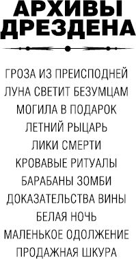 – Добрый вечер, мистер Дрезден, – негромко произнесла она.