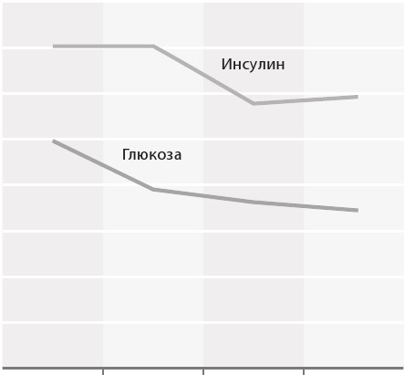 Рис. 1.3. Голодание продолжительностью больше четырёх дней ведёт к снижению уровня инсулина и сахара в крови