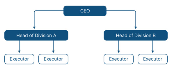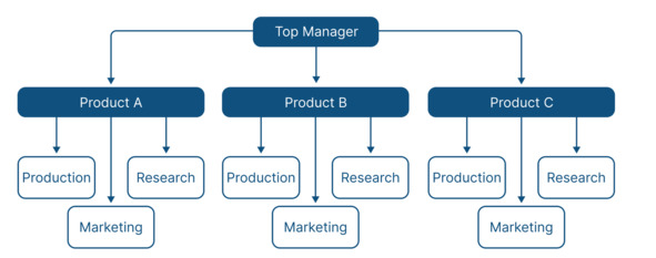 Similar to the linear structure, but the divisions are structured according to the principles of product or market separation. Optimal for companies with a large number of markets and heterogeneous products. For such enterprises it is necessary to create individual basic business processes for each product / region: supply, production, marketing, sales.