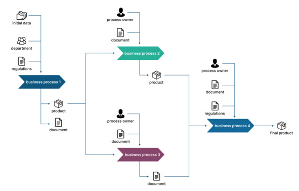 A business process is a certain algorithm of interrelated actions of people and IT systems, which is aimed at transformation of «raw materials» into «product» or result.