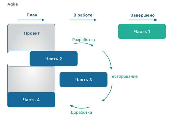 «Гибкие» методологии здесь могут привести к необоснованному перерасходу бюджета и срыву срока. Но они могут применяться как элемент «гибридного» подхода.