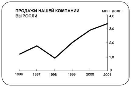 Фрэнк продолжает: «По сравнению с другими компаниями результаты нашей работы можно назвать выдающимися. K примеру, с 1996 года наши продажи значительно выросли, несмотря на спад в 1998 году, причиной которого, как вы знаете, была забастовка».