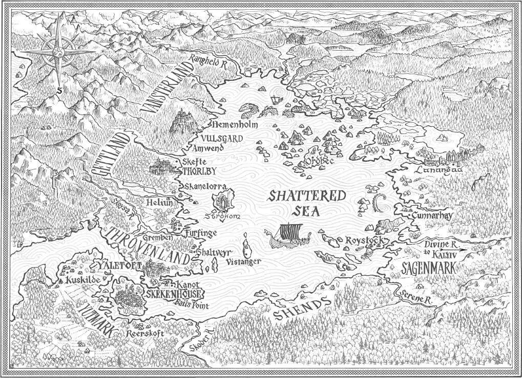 ‘You are a king, now.’ She twisted his crooked cloak-buckle into place, tried to tame his pale blonde hair, close-clipped but always wild, and finally laid cool fingertips against his cheek. ‘You must never be sorry. You must wear your father’s sword, and lead a raid against the Vanstermen.’