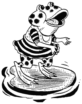 – Пры-гай, пры-гай в пруд! Пры-гай в пруд!