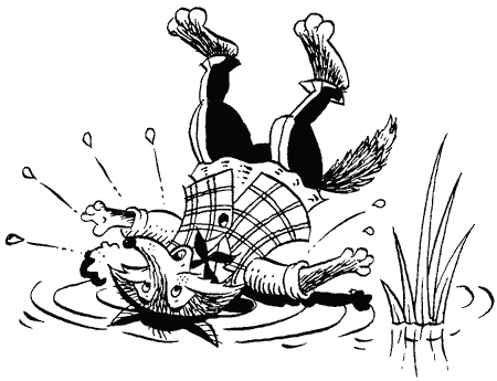 Потянулся Лис, чтобы пожать ему руку, и кувырком в пруд.