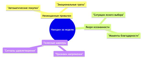 После выполнения упражнения «7 дней внимания к деньгам» у большинства людей начинает формироваться новое внутреннее поле наблюдения. Чтобы структурировать этот опыт, я предлагаю использовать простую схему – карту находок. Она помогает не просто подвести итоги, но и увидеть важные закономерности.