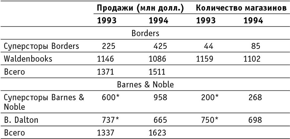 Таблица 1. Расширение Borders и Barnes & Noble, 1993–1994 годы
