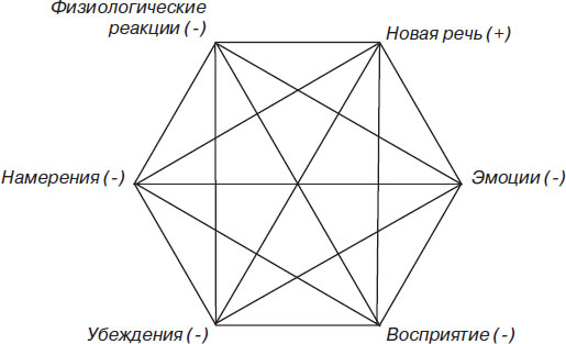НОВАЯ ПАРАДИГМА ЗАИКАНИЯА задай они мне вопрос, я бы их ознакомил с той парадигмой заикания, которая возникла у меня из собственного жизненного опыта. Я пришел к пониманию заикания не просто как к речевой проблеме, а как к системе, вовлекающей всего человека, – интерактивной системе, состоящей не менее чем из шести компонентов: поведения, эмоций, восприятия, убеждений, намерений и физиологических реакций. Эта система может быть представлена в виде шестиугольника, каждая вершина которого воздействует и подвергается воздействию со стороны всех остальных вершин. И этим динамическим взаимодействием шести компонентов система заикания поддерживается в относительном балансе.