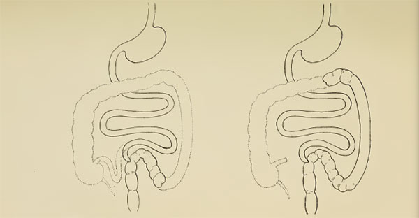 «Недавние наблюдения Кэннона ясно показали, что илеоцекальный сфинктер действует очень похоже на привратник желудка, удерживая пищевые продукты в тонком кишечнике до тех пор, пока пищеварительная работа средней кишки не завершена и переваренные пищевые продукты были поглощены. В течение последних нескольких лет Хольцкнехт, Шварц, Гроедель, Кейс и многие другие рентгенологи четко продемонстрировали функциональную активность илеоцекального клапана, контролирующего движение пищевых продуктов из тонкой кишки в толстую. Эти наблюдения подтверждают необходимость илеоцекального клапана для следующих целей: