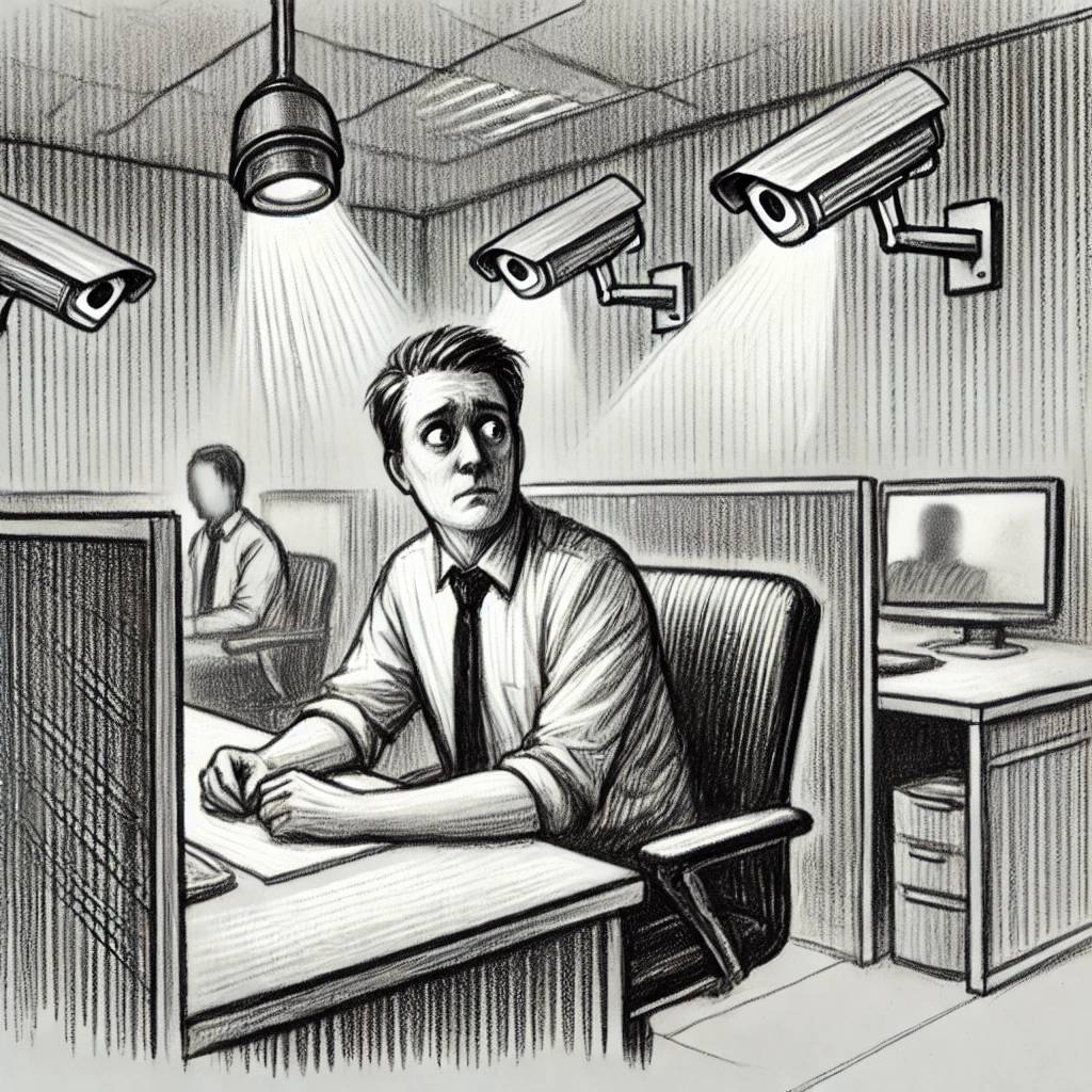 С тех пор как вы переступили порог офиса, вас окружают камеры, фиксирующие каждое ваше действие, начиная с момента, когда вы стучите по клавиатуре, и заканчивая тем, как вы прячетесь за стеной, чтобы поесть свой обед в тишине. Каждый ваш шаг отслеживается так же тщательно, как старые компьютеры отслеживают количество открытых вкладок в браузере. И не надейтесь, что ваши шутки или обсуждения о жизни сотрудников останутся незамеченными. Охранник на входе уже знает о вашем дне, словно он старый знакомый.