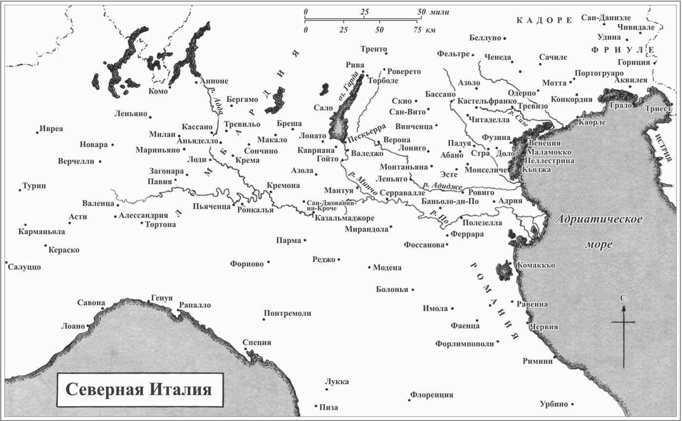 Еще одно затруднение преследовало меня: постоянный соблазн отступить от главной темы. Захотелось поговорить о картинах и скульптуре, музыке и архитектуре, костюмах, обычаях и общественной жизни, в особенности о жизни XVIII века, достигшей высочайшего уровня просвещенной утонченности, сравнить которую возможно лишь с жизнью общества, посвятившего себя войне, за три столетия до этого. (Казанова и Карманьола – кто из них был дальше от реальности? Чью фигуру можно считать более трагичной и, если уж на то пошло, более смехотворной?). Этих соблазнов я старался по возможности избежать, хотя, сознаюсь, не преуспел в этом, особенно в отношении архитектуры. Книг на эти темы написано великое множество, и толковых, и с множеством иллюстраций, а моя работа из без того весьма объемна.