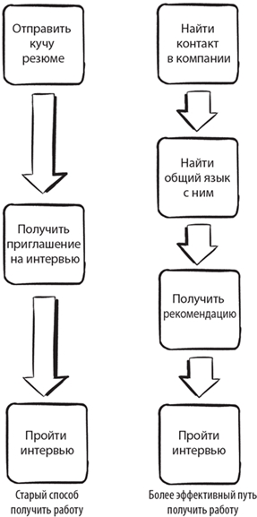 Большая часть людей получает работу в компании по рекомендациям. Когда ты проходишь собеседование, то интервьюер уже заранее относится к тебе положительно – все благодаря человеку, поручившемуся за тебя. Репутация и связи рекомендующего тебя человека дают тебе огромное преимущество на собеседовании. Уже в самом начале собеседования интервьюер относится к тебе с некоторым уважением, так как он доверяет человеку, порекомендовавшему тебя.