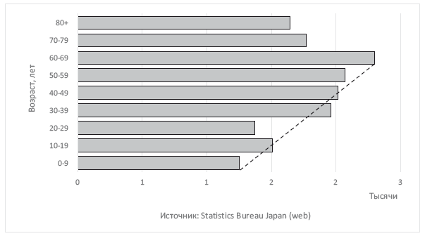 Рис. 0.1. Распределение населения Канегасаки по возрастным группам, 2020 г.