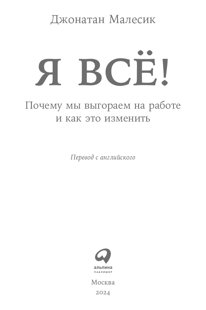 Замысел книги «Я всё!» происходит из моего желания понять, почему миллионы работников из разных сфер деятельности лишаются сил, необходимых для выполнения своих задач, и почему это заставляет их чувствовать себя неудачниками. Для меня выгорание – это ощущение, что ты разрываешься между ожиданиями от работы и реальностью. Я уверен, что выгорание – это культурный феномен, который широко распространился в последние полвека, однако корнями он уходит в наше убеждение, что работа – это способ не только заработать деньги, но и обрести чувство собственного достоинства, сформировать характер, найти смысл жизни. В сущности, несмотря на всеобщую озабоченность по поводу выгорания, само это явление продолжает существовать, потому что мы уважаем эти ценности. Мы боимся потерять смысл, который обещает нам работа. При этом условия труда, типичные для США и других богатых постиндустриальных стран, мешают нам достичь того, к чему мы стремимся.