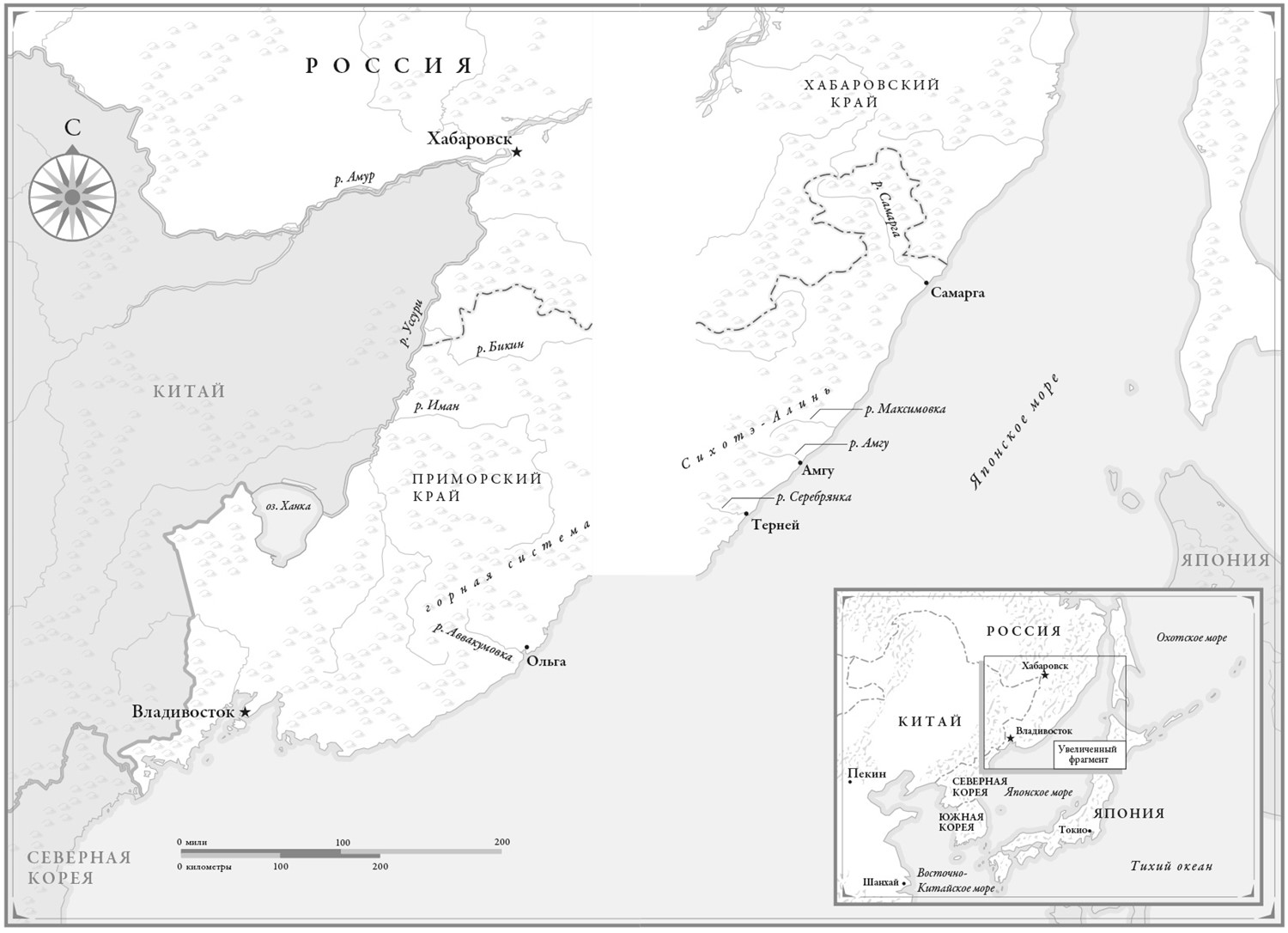 На тот момент я уже пятый год подряд приезжал в Приморье. В детстве и юности большую часть времени я проводил в городах, и в моей картине мира преобладали ландшафты, созданные человеком. Однажды летом, когда мне исполнилось девятнадцать, отец взял меня с собой в командировку. Мы летели из Москвы{2}, и я увидел, как лучи солнца вспыхивают и прокатываются по зеленому морю гор, буйному, густому, нетронутому. Передо мной то взмывали ввысь, то cпускались в долины величественные волны горных хребтов, которые проносились мимо километр за километром, пока я завороженно смотрел на них. Ни селений, ни дорог, ни людей – ничего этого не было. Таким я увидел Приморье. И влюбился.