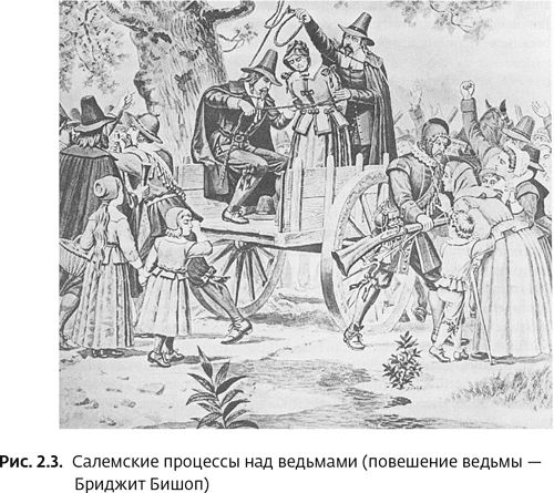Самый знаменитый случай истерии и охоты на ведьм в Америке – суд над ведьмами в деревне Салем в штате Массачусетс. В 1692 г. несколько молодых жительниц деревни вдруг начали вести себя странно – впадать в конвульсии, вопить и слоняться по деревне в состоянии транса. Врачи не смогли найти никаких причин для такого поведения, так что местные руководители решили: девушки – ведьмы (сегодня они могли бы стать рок-звездами). Жители деревни подали прошение о том, чтобы власти разобрались с деревенскими ведьмами. Со временем девушек заставили признаться; в результате было осуждено и повешено 19 человек. А один восьмидесятилетний старик, отказавшийся давать показания, во время пытки был забит камнями.