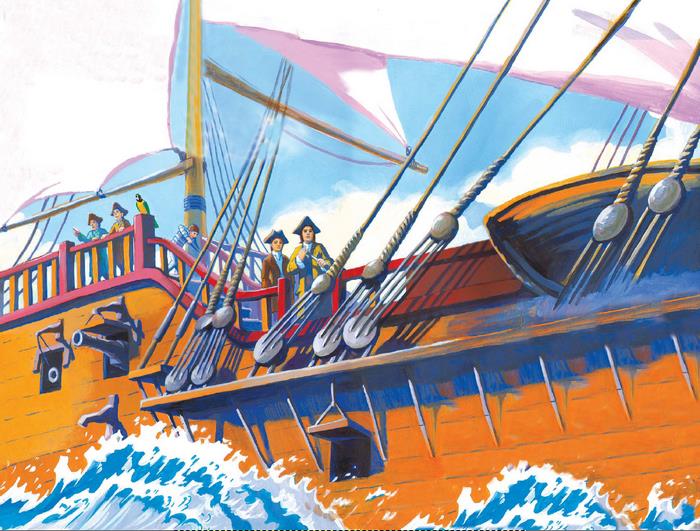 На корме стоял корабельный врач Гулливер и смотрел в подзорную трубу на пристань. Там остались его жена и двое детей: сын Джонни и дочь Бетти.