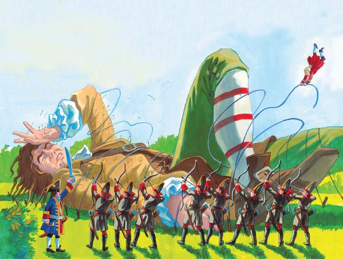 Но Гулливер этого ещё не знал. Он лежал на своей телеге, а со всех сторон к нему бежали толпы лилипутов.