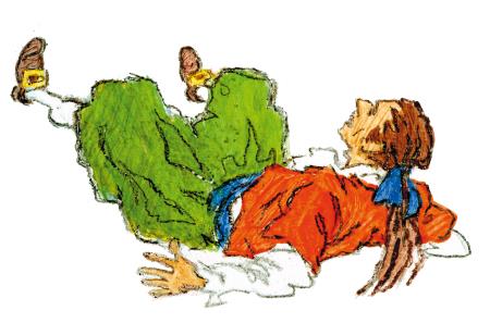 После вина Гулливеру сразу захотелось спать. Сквозь сон он почувствовал, как человечки бегают по всему его телу вдоль и поперёк, скатываются с боков, точно с горы, щекочут его палками и копьями, прыгают с пальца на палец.