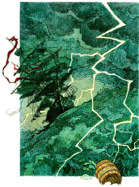 Но вот однажды, при переходе в Восточную Индию, корабль настигла страшная буря. Ветер и волны погнали его неизвестно куда.