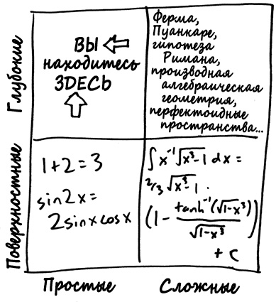 Математические факты могут быть простыми и сложными, поверхностными и глубокими, что делит математическую вселенную на четыре сектора: