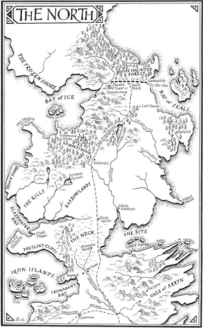 She had a tooth too, a little one made of bone, but she dropped it when the warg’s jaws closed around her leg. As she fell, she wrapped both arms around her noisy pup. Underneath her furs the female was just skin and bones, but her dugs were full of milk. The sweetest meat was on the pup. The wolf saved the choicest parts for his brother. All around the carcasses, the frozen snow turned pink and red as the pack filled its bellies.