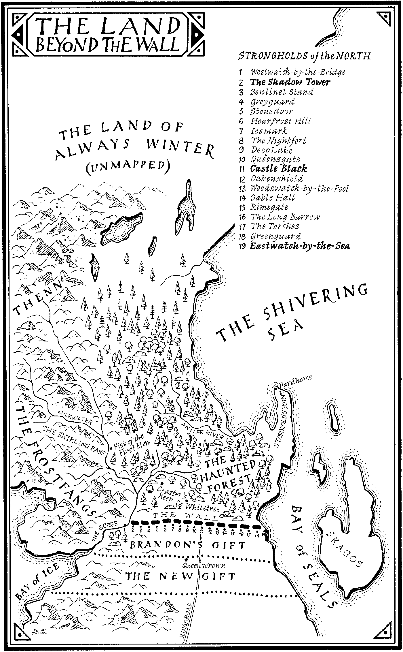 Will shared his unease. He had been four years on the Wall. The first time he had been sent beyond, all the old stories had come rushing back, and his bowels had turned to water. He had laughed about it afterward. He was a veteran of a hundred rangings by now, and the endless dark wilderness that the southron called the haunted forest had no more terrors for him.