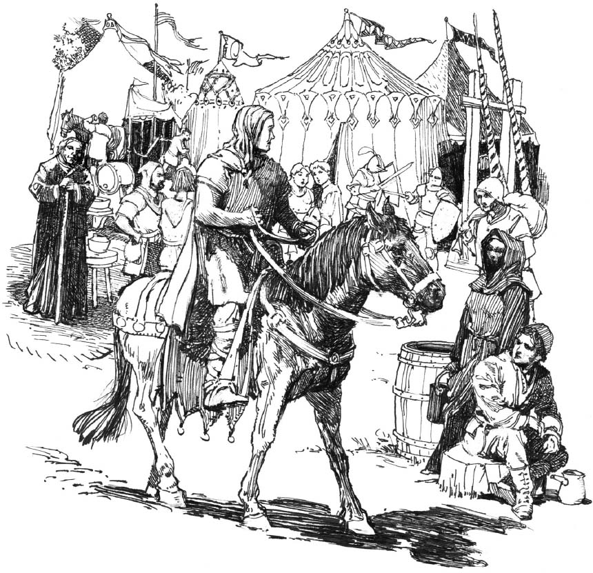 A hedge knight must hold tight to his pride. Without it, he was no more than a sellsword. I must earn my place in that company. If I fight well, some lord may take me into his household. I will ride in noble company then, and eat fresh meat every night in a castle hall, and raise my own pavilion at tourneys. But first I must do well. Reluctantly, he turned his back on the tourney grounds and led his horses into the trees.