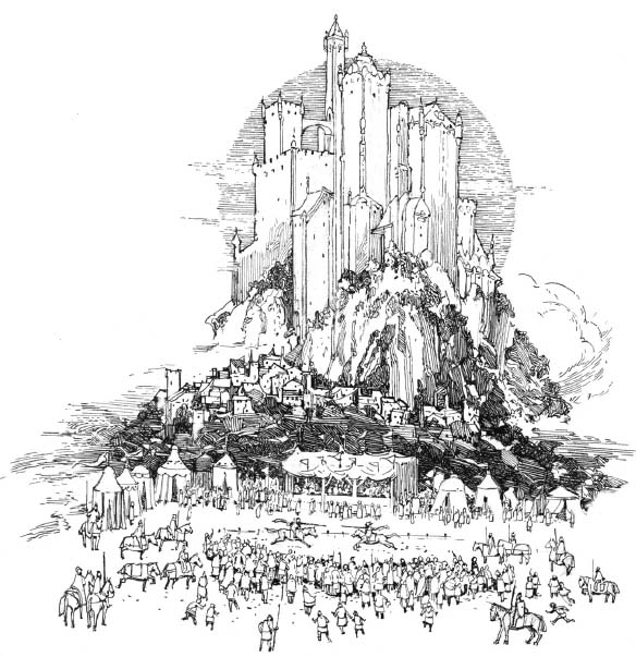 The shadows of the afternoon were growing long when Dunk reined up on the edge of broad Ashford Meadow. Threescore pavilions had already risen on the grassy field. Some were small, some large; some square, some round; some of sailcloth, some of linen, some of silk; but all were brightly colored, with long banners streaming from their center poles, brighter than a field of wildflowers with rich reds and sunny yellows, countless shades of green and blue, deep blacks and greys and purples.