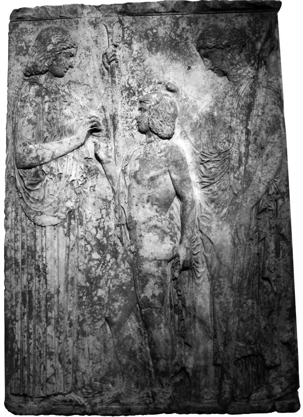 Триптолем получает семена пшеницы от Деметры и благословения от Персефоны. V в. до н. э. Национальный археологический музей, Афины