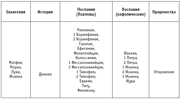 Канонические новозаветные книги были распределены по следующим категориям: