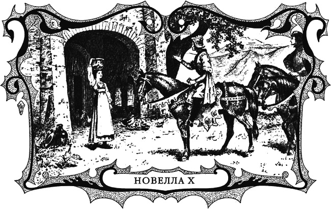 Когда настал час обеда, мессер Торелло, в том платье, в каком был, отправился с аббатом в дом молодого, причем всякий, кто его видел, глядел на него с удивлением, но никто не признал, а аббат всем говорил, что это – сарацин, посланный султаном к французскому королю в качестве посла. И вот мессера Торелло посадили за стол как раз напротив его жены, на которую он смотрел с величайшим удовольствием, и ему казалось по лицу, что она опечалена этой свадьбой. Она также смотрела на него порой, не потому, чтобы хотя бы сколько-нибудь его признала, ибо тому препятствовали и большая борода, и невиданный наряд, и прочное убеждение, в котором она находилась, что он умер. Когда мессеру Торелло показалось, что настало время испытать, помнит ли она его, он снял с руки кольцо, подаренное ему женою при его отъезде, и, велев позвать мальчика, прислуживавшего ей, сказал ему: «Скажи от меня молодой, что в моей стране существует обычай: когда какой-нибудь чужеземец, как я, обедает на пиру у какой-нибудь молодой, какова она, она посылает ему, в знак того, что ей приятно его присутствие за столом, кубок, полный вина, из которого сама пьет, а когда гость отопьет из него сколько ему угодно и закроет кубок, молодая выпивает, что осталось». Мальчик передал это поручение даме, которая, как женщина воспитанная и умная, полагая, что он – человек очень именитый, и желая показать, что ей приятно его присутствие, велела взять большой позолоченный кубок, стоявший перед нею, и, наполнив вином, поднести гостю, что и было сделано.