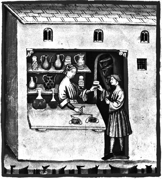 Аптека. Миниатюра из Tacuinum sanitatis – средневекового трактата о здоровье. XIV в.