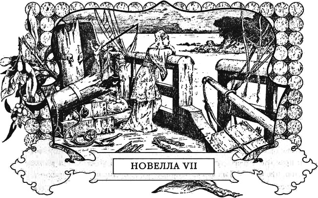 Когда эти достойные и радостные приветствия повторились три или четыре раза, не без великой радости и удовольствия присутствующих, когда один успел рассказать другому все свои приключения, а Куррадо объявил своим друзьям, к общему удовольствию, о своей новой родственной связи и распорядился устройством прекрасного, великолепного торжества, Джьусфреди сказал ему: «Куррадо, вы многим порадовали меня и долгое время держали в чести мою мать; теперь, дабы не осталось не сделанным ничего, что вы в состоянии сделать, я прошу вас, чтобы вы и мою мать, и мой праздник, и меня самого развеселили присутствием брата, которого держит у себя в качестве слуги мессер Гаспаррино д’Ориа, и меня полонивший, как я уже сказал вам, в корсарском набеге; а затем чтобы вы послали в Сицилию кого-нибудь, кто бы точно осведомился об отношениях и положении страны, разузнал бы, что сталось с Арригетто, отцом моим, жив он или умер, а коли жив, в каком положении, – и, разузнав обо всем в полности, вернулся бы к нам». Понравилась Куррадо просьба Джьусфреди, и, не мешкая, он послал надежных людей в Геную и Сицилию. Тот, кто отправился в Геную, разыскав мессера Гаспаррино, настоятельно попросил его от лица Куррадо доставить ему Скаччьято и его мамку, по порядку рассказав ему все, содеянное Куррадо по отношению к Джьусфреди и его матери. Сильно подивился мессер Гаспаррино, услышав это, и сказал: «Разумеется, я сделал бы для Куррадо все, что бы мог и что бы он ни захотел; живет у меня в доме уже лет с четырнадцать мальчик, о котором ты спрашиваешь, с матерью, коих я охотно ему доставлю; но скажи ему от меня, чтобы он остерегся доверяться и не доверялся рассказам Джьяннотто, который ныне зовет себя Джьусфреди, ибо он гораздо хитрее, чем полагает Куррадо». Так сказав и велев учествовать достойного человека, он тайно приказал позвать мамку и осторожно расспросил ее об этом деле. Та, услышав о восстании в Сицилии и узнав, что Арригетто жив, отложила страх, который прежде питала, все по порядку ему рассказала и объяснила ему причины, почему она держалась того образа действия, какому следовала. Увидев, что рассказы мамки отлично согласуются с рассказами посланного, мессер Гаспаррино возымел доверие к его словам; как человек очень тонкий, тем и другим способом расследовав это дело и все более находя обстоятельства, убеждавшие в его достоверности, он устыдился своего недостойного обращения с мальчиком и в возмездие за это выдал за него с большим приданым свою дочку, красавицу одиннадцати лет, ибо знал, кто такой и чем был Арригетто. После большого празднества, устроенного по этому поводу, он вместе с юношей и дочерью, с посланцем Куррадо и мамкой сел на хорошо вооруженную галеру и прибыл в Леричи, где был принят Куррадо, затем со всем своим обществом отправился в один из замков Куррадо неподалеку оттуда, где было приготовлено большое торжество. Какова была радость матери, вновь увидевшей своего сына, какова радость обоих братьев и всех троих при виде верной мамки, каков прием, оказанный всеми мессеру Гаспаррино и его дочери, и его привет всем и всех вообще по отношению к Куррадо и его жене с сыновьями и друзьями, всего этого не объяснить словами, почему я предоставляю вам, мои дамы, вообразить себе это.