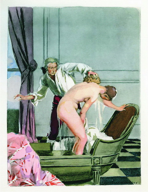 Я почтительно повиновался, но от тошнотворного, почти трупного запаха мускуса в горле у меня начались спазмы. Омерзительная герцогиня приподнялась, открыв невообразимую грудь, которая напугала бы самого отчаянного смельчака. Князь, сделав вид, что торопится, пообещал незамедлительно прислать мне своего «чёрта» и направился к дверям.