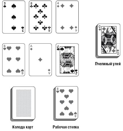 Перетасуйте карты. Затем, держа колоду рубашкой вверх, отсчитайте 10 карт и положите их на стол стопкой, лицевой стороной вверх – таким образом, чтобы видна была только верхняя. Это и будет «улей».
