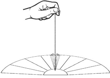 Чтобы определить, на какое время нужно оставлять кристалл на месте, возьмите маятник. Особенно полезно удостовериться, если помещаете кристалл на тело или возле себя, кладете возле кровати или постоянно носите на теле и хотите узнать, можно ли снимать его на ночь. В этом случае спросите: «Нужно ли мне снимать кристалл на время сна?» Маятник должен ответить «да» или «нет». Чтобы определить время ношения, нарисуйте дугу, на которой поставьте отметки, соответствующие интервалам в пять минут, один час или один день (заранее уточните у маятника, как разметить шкалу: в минутах, часах или днях). Держа маятник над центром (серединой) арки, попросите его качнуться в сторону нужной отметки (см. рисунок).