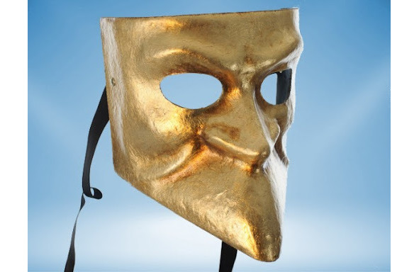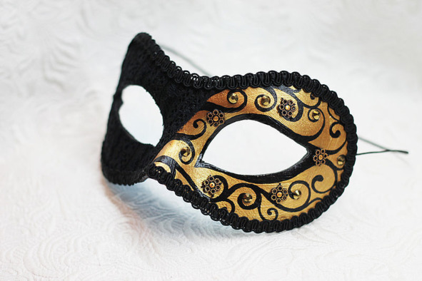 А теперь рассмотрим венецианские маски. Наиболее популярной была широкая узконосая и удлинённая полумаска белого цвета, которая полностью скрывала лицо. Такая маска называлась Баута.
