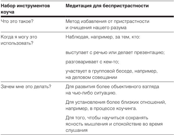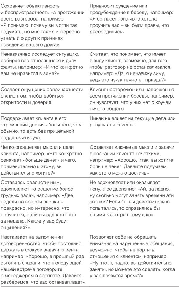 Сохраняя беспристрастность, коуч не думает про себя: «Это ужасно, жестоко, грубо и проч.». Коуч не хмурится, неодобрительно покачивая головой. Он всего лишь внимательно слушает, оставаясь в русле беседы.