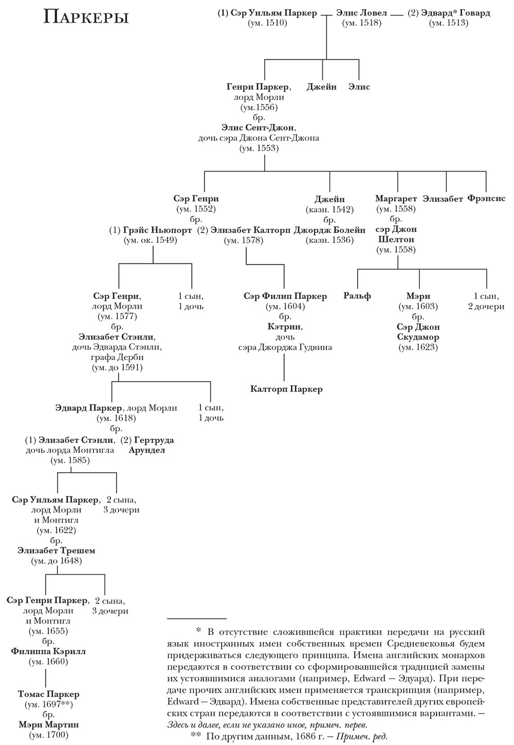 К помосту высотой не более трех футов[5] вели четыре или пять ступеней10. Предполагалось, что эшафот должен был быть задрапирован полотном черного цвета, однако неизвестно, успели ли служащие Тауэра в срок завершить все работы. Вокруг эшафота располагались наспех сооруженные ряды сидений для наиболее именитых зрителей, среди которых был и пасынок Анны, семнадцатилетний Генри Фицрой, герцог Ричмонд, внебрачный сын короля, который, вероятно, должен был представлять своего отца. Анна никогда его не жаловала, и сегодня он с удовольствием посмотрит ее казнь. Рядом с ним сидели герцог Саффолк, сэр Томас Одли (лорд-канцлер), Кромвель и большинство членов Тайного совета, а также члены палаты лордов. За ними расположились мэр и олдермены[6] Лондона, а из-за их спин выглядывали представители ливрейной гильдии во главе с владельцем и старостами Почтенного общества торговцев тканями (Worshipful Company of Mercers)11. По свидетельству одного из служащих Тауэра, многие из присутствовавших жителей Лондона привели с собой жен, да и некоторым чужакам (то есть иностранцам), несмотря на строгий запрет, удалось проскользнуть незамеченными, минуя охрану12. Один из будущих слуг Кромвеля отмечал не без простительного преувеличения, что толпа в Тауэре насчитывала не менее тысячи человек. Скорее всего, собравшихся было вполовину меньше13.