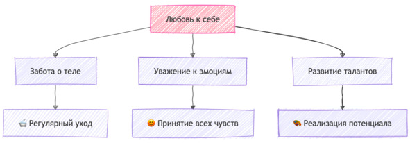 Любовь к себе – это способность принимать себя со всеми своими достоинствами и недостатками. Это значит признавать, что у тебя бывают ошибки, неудачи, усталость и грусть, и при этом относиться к себе с уважением и пониманием. Любить себя не значит игнорировать свои проблемы или притворяться, что всё в порядке, когда на самом деле ты чувствуешь боль или сомнения. Наоборот, это значит признавать свои чувства и потребности и не оставлять себя без поддержки.